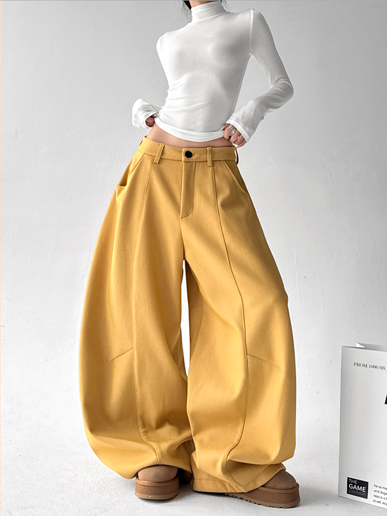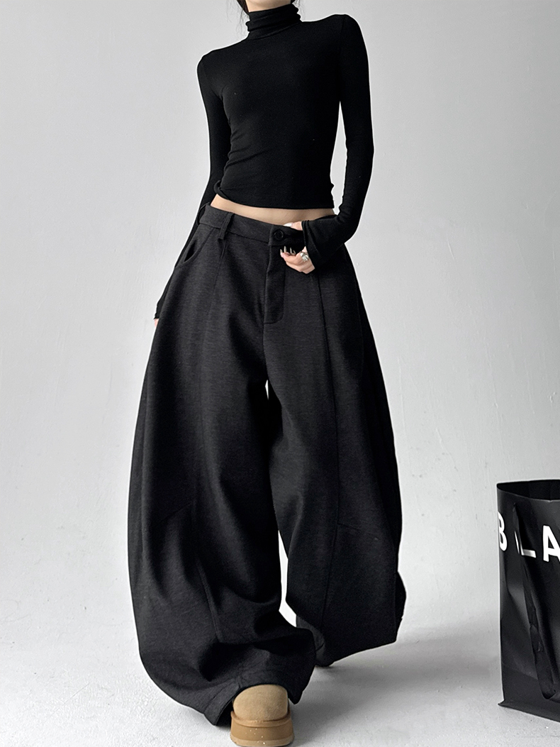 These winter-ready sweatpants combine a high-waist, ultra‑wide balloon leg, and cozy fleece lining for a sweet‑and‑spicy silhouette that elongates the waist while delivering dramatic volume and comfort. Clean tailoring at the waistband and pockets keeps the look elevated for everyday street styling.